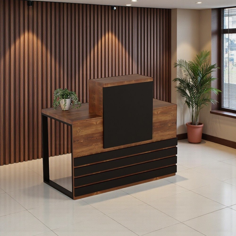Стойка администратора Tobi Sho Ресепшн/5 центральная для офиса, салона, 1400х636х1090 Файервуд/Черный