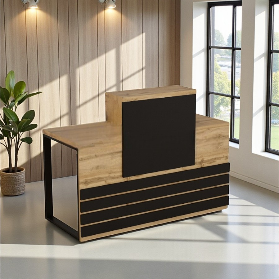 Стойка администратора Tobi Sho Ресепшн/5 левосторонняя для офиса, салона, 1600х636х1090 Дуб аппалачи/Черный