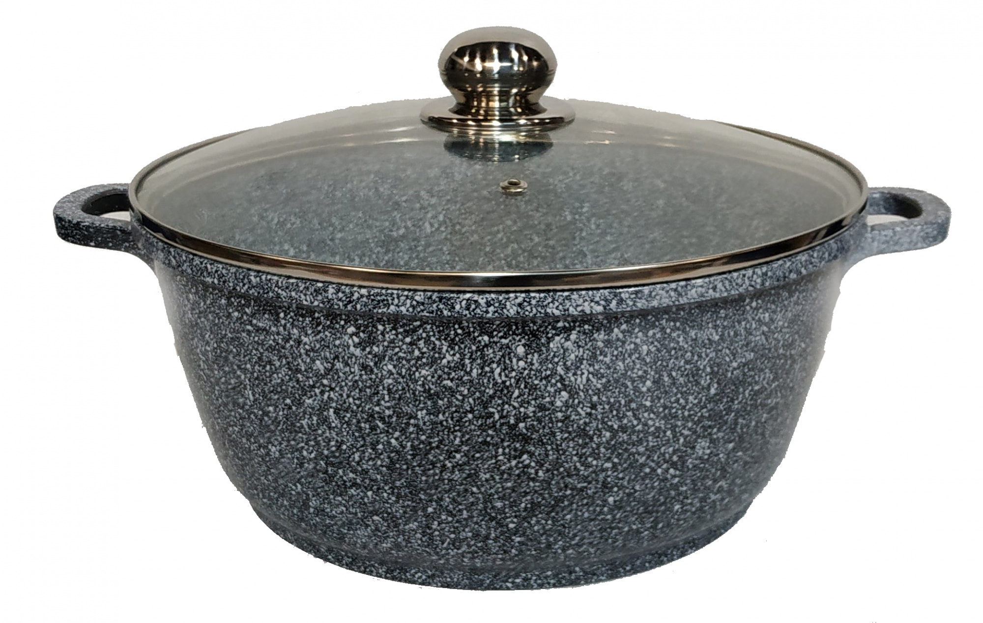Кастрюля со стеклянной крышкой выполнена из толстостенного алюминия он прочен, экологичен, удобен в применении. Обработан антипригарным гранитным покрытием, не допускающим пригорания продуктов. Жаропрочная стеклянная крышка позволит наблюдать за процессом готовки без открывания казана. Кастрюля от Benson надежная и долговечная кухонная принадлежность, незаменимая при готовке плова, тушеных и парных блюд.
