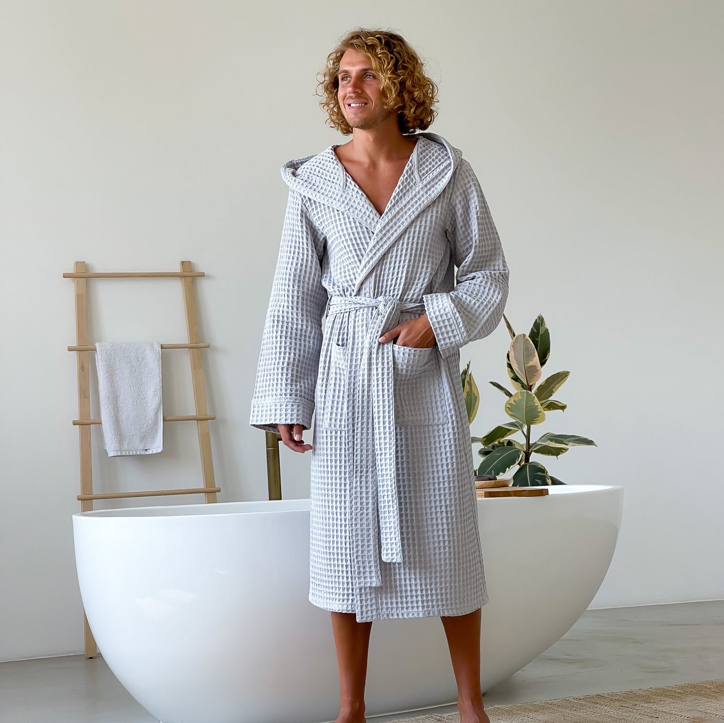 Для кого подойдет халат Relaxed Waffle Robe? Для мужчин, ищущих натуральный и качественный банный халат. Для тех, кто любит легкий мужской халат с капюшоном. Для подарка – стильный мужской халат станет отличным выбором для мужчины, друга или отца. Как ухаживать за вафельным халатом? Рекомендованная стирка при температуре до 40°C без использования агрессивных средств. Сушить естественным способом, избегать пересушивания. Гладить при средней температуре, чтобы сохранить структуру ткани.