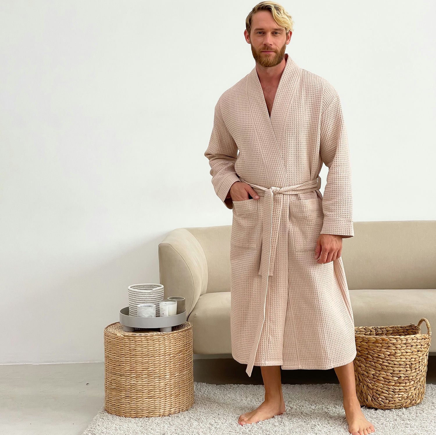Описание Халат мужской COSAS Waffle Robe S Бежевый (WaffleRobe_S)