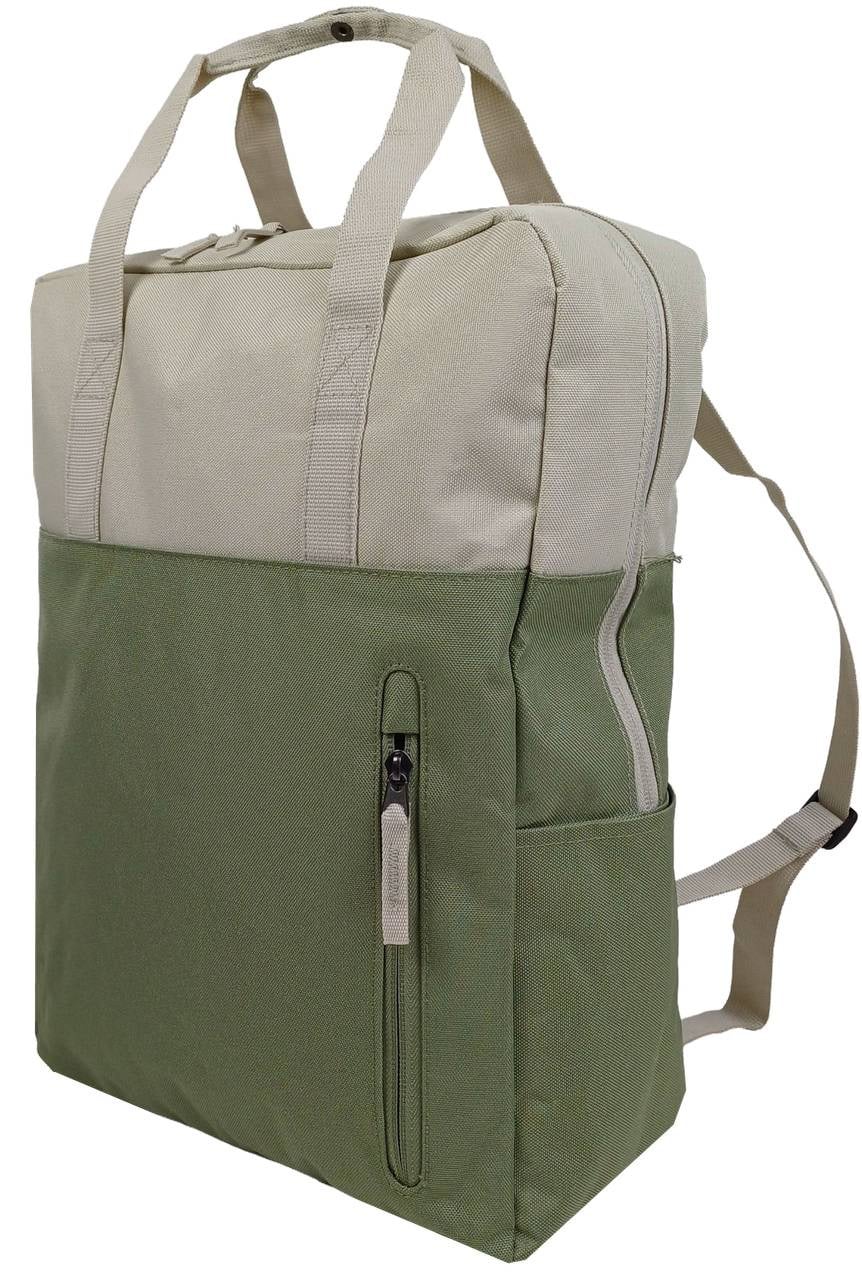 Универсальная и невероятно легкая сумка-трансформер от австрийского бренда Live in style дает вам свободу выбора каждый день. Носите ее как стильную сумку с двумя ручками или как удобный рюкзак на нейлоновых лямках. Сочетание бежевого и оливкового цветов создает современный актуальный look, а объем 27 литров делает эту модель идеальной для работы, учебы, шопинга или спонтанных поездок.