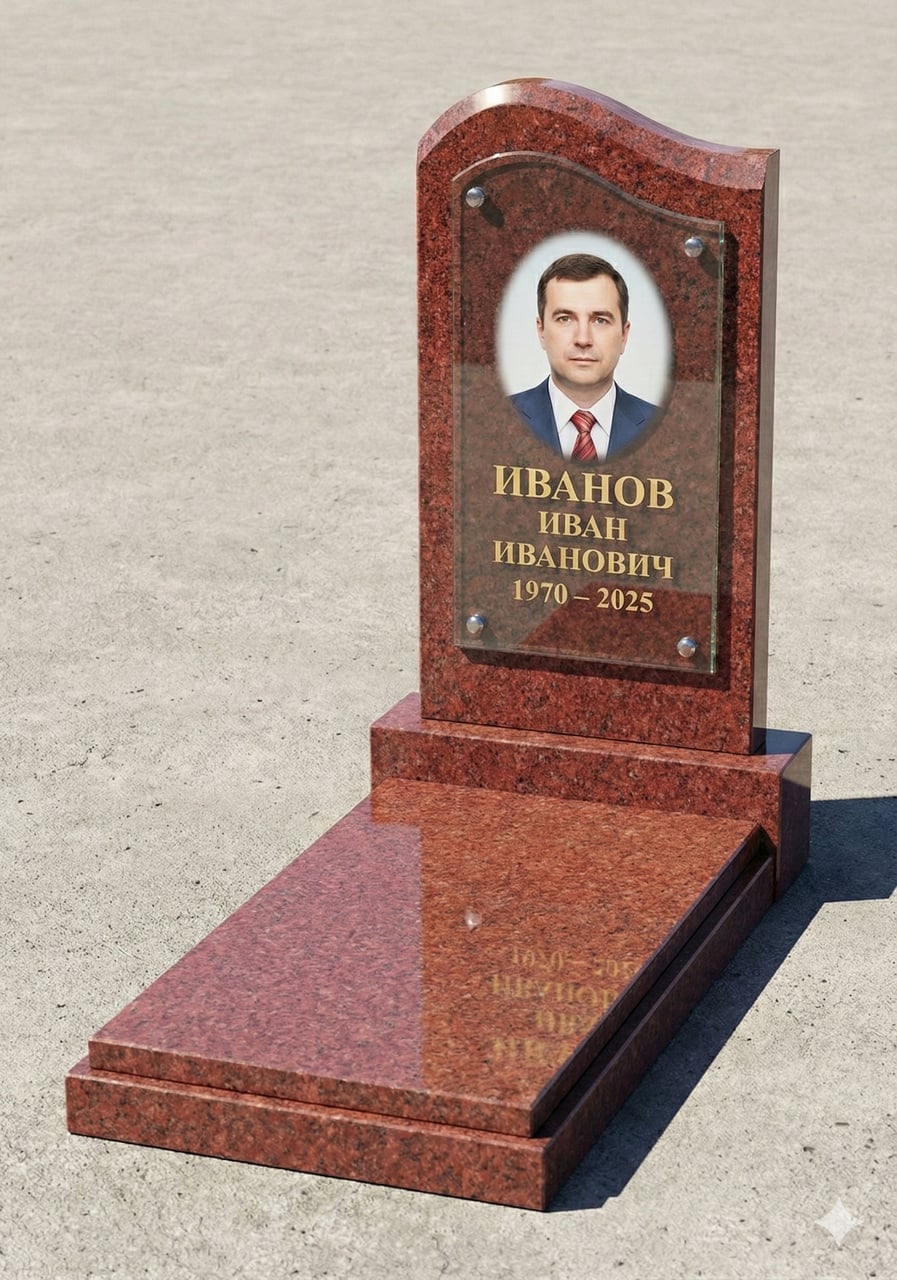 Гарний пам'ятник із червоного граніту. Можливий варіант із відмосткою. Можливе виготовлення в сірому, чорному та зеленому граніті та світлому піщанику.