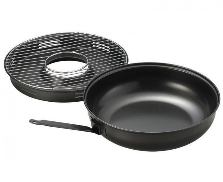 Сама сковорода долго держит жар благодаря использованию углеродистой стали и мраморному покрытию.