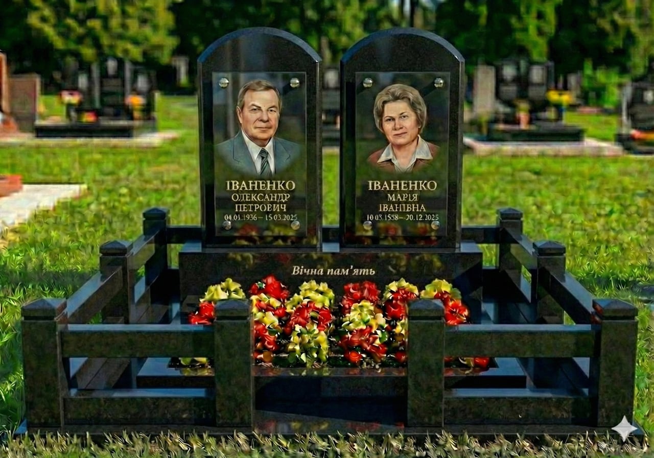 Комплекс пам'ятник граніт чорний подвійний