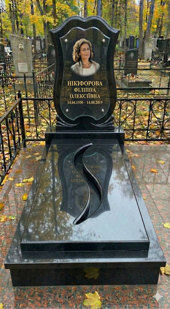 Описание Одинарний пам'ятник із фігурною стелею чорний граніт