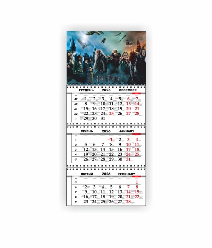 Календарь квартальный настенный Vivay 2026 Гарри Поттер 30x65 см Разноцветный (hub_e2pnb8)