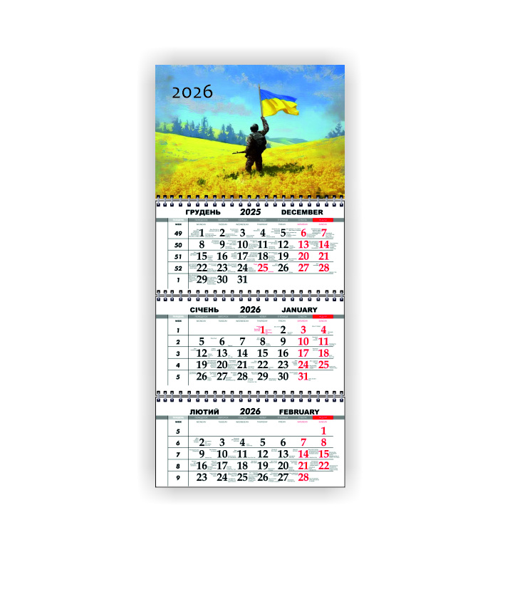 Календарь квартальный настенный Vivay 2026 ВСУ 30x65 см Разноцветный (hub_8f0z5q)