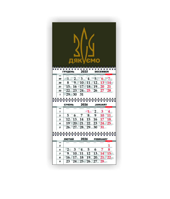 Квартальный настенный календарь Vivay 2026 ВСУ 30x65 см Разноцветный (hub_tbp95n)