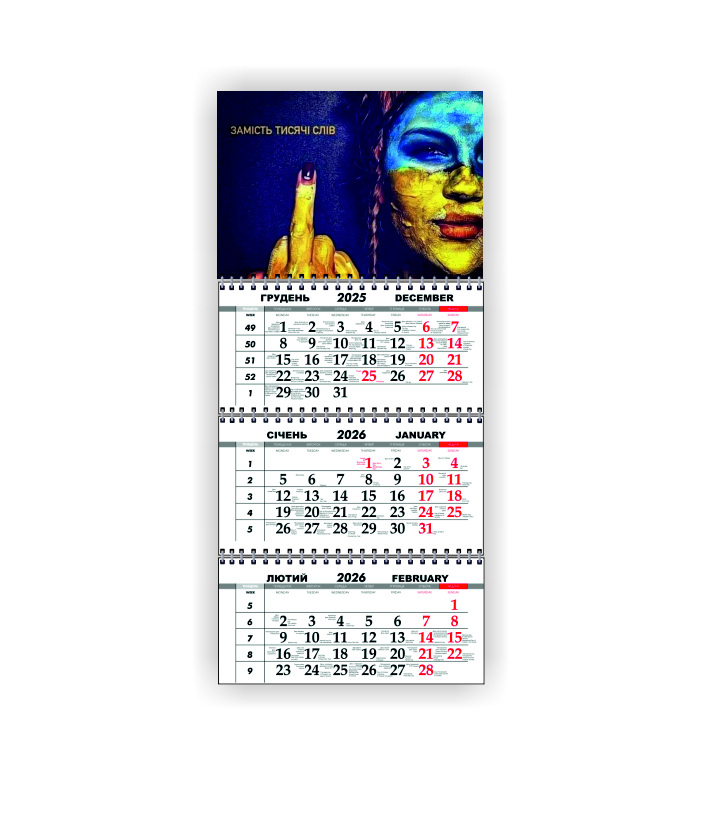 Квартальный настенный календарь Vivay 2026 Украина 30x65 см Разноцветный (hub_zn15ut)