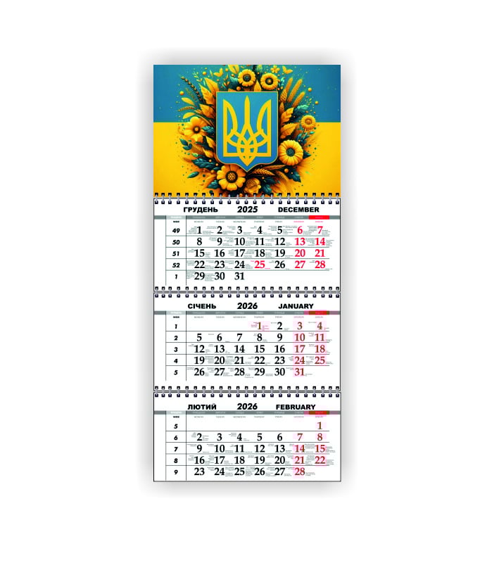 Квартальный настенный календарь Vivay 2026 Украина 30x65 см Разноцветный (hub_q9zsq7)
