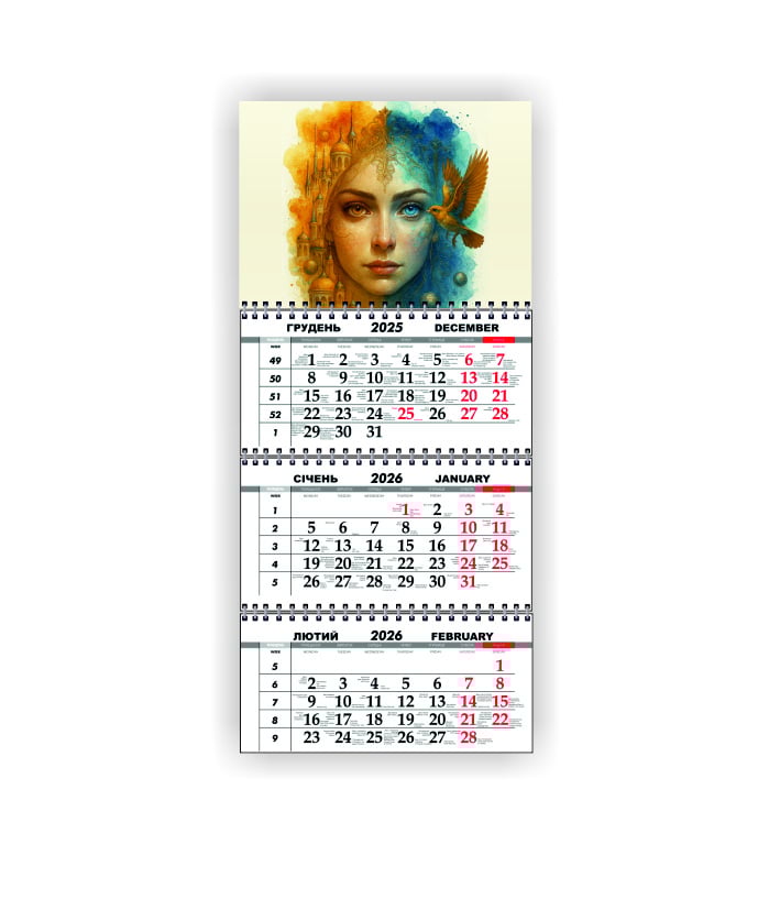 Квартальный настенный календарь Vivay 2026 Украина 30x65 см Разноцветный (hub_zn15ut)