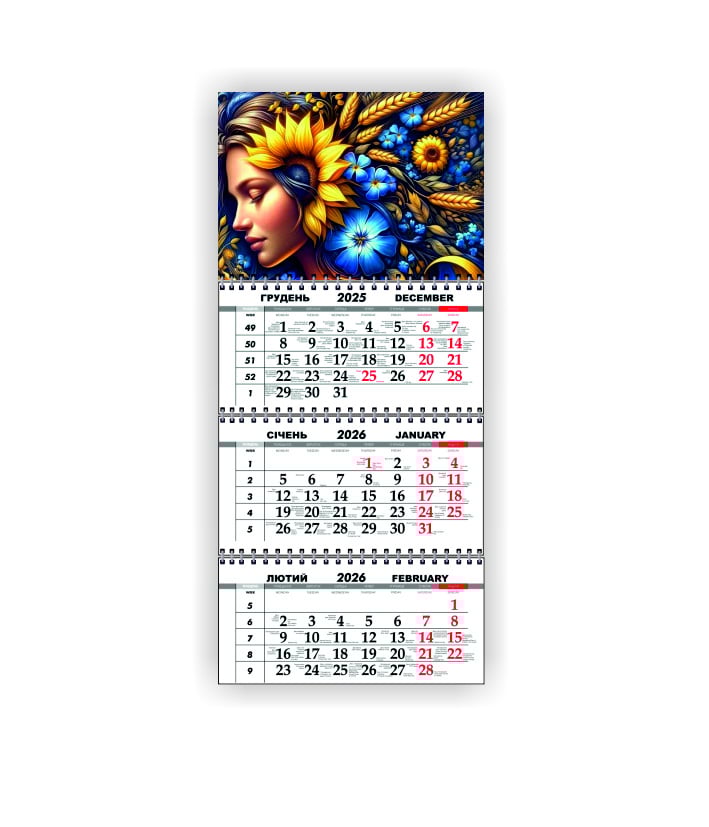 Квартальный настенный календарь Vivay 2026 Украина 30x65 см Разноцветный (hub_zn15ut)