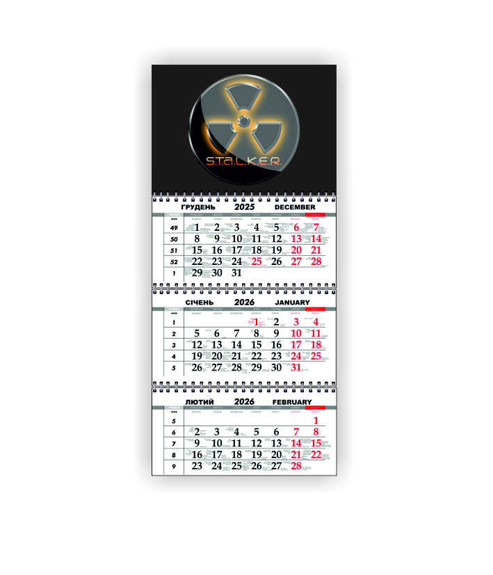 Календарь квартальный настенный Vivay 2026 Stalker 30x65 см Разноцветный (hub_kzk9t2)