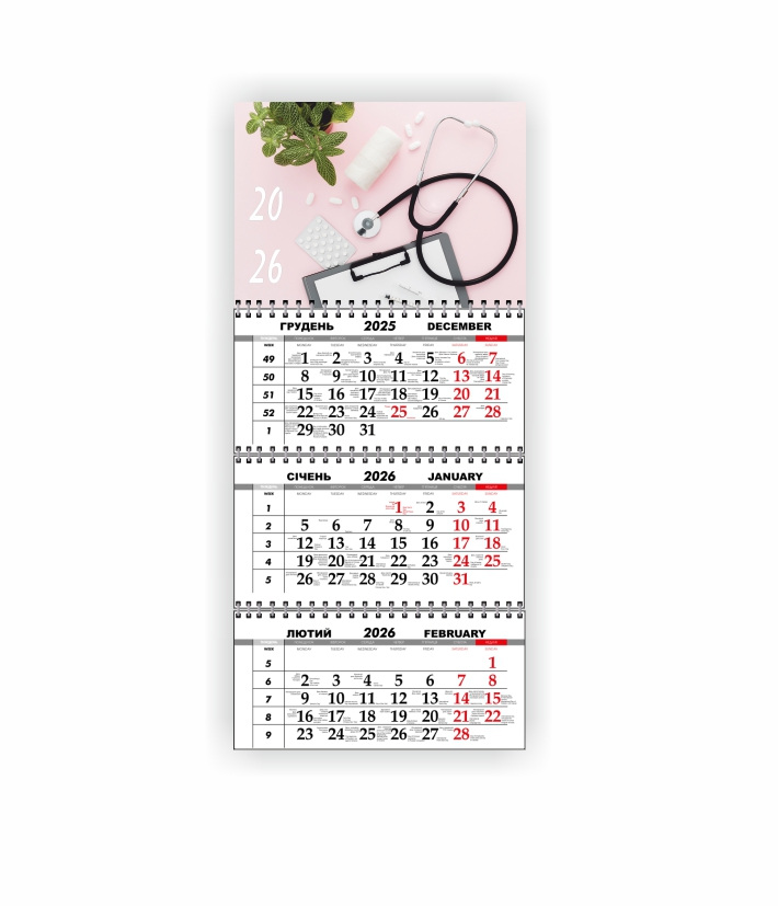 Календарь квартальный настенный Vivay 2026 Медицинский 30x65 см Разноцветный (hub_20e13t)