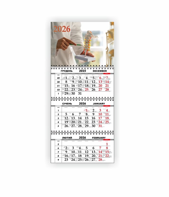 Календарь квартальный настенный Vivay 2026 Медицинский 30x65 см Разноцветный (hub_t0rfkl)