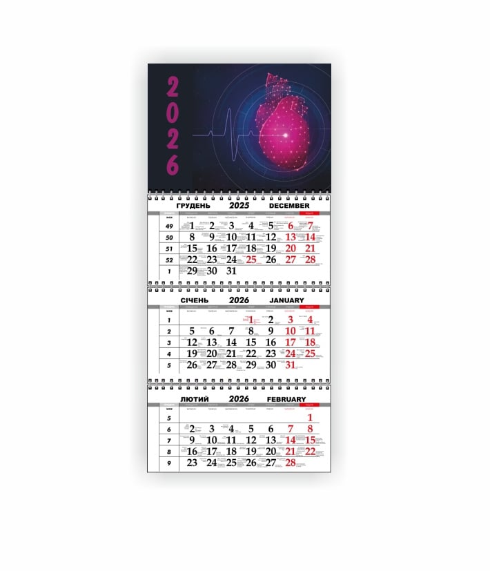 Календарь квартальный настенный Vivay 2026 Медицинский 30x65 см Разноцветный (hub_bxlgpd)