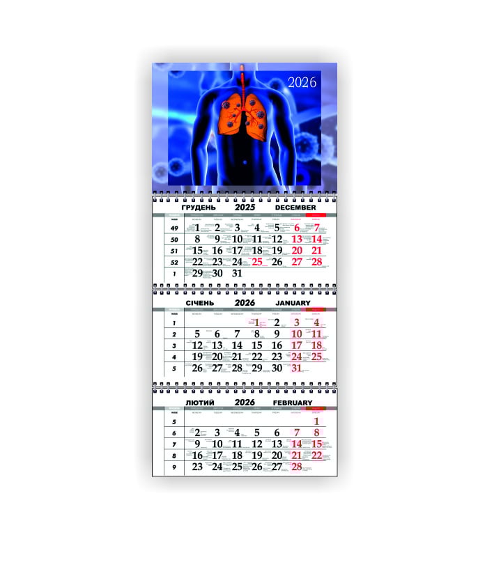 Календарь квартальный настенный Vivay 2026 Медицинский 30x65 см Разноцветный (hub_t0rfkl)