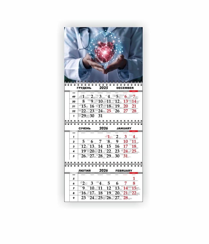 Календарь квартальный настенный Vivay 2026 Медицинский 30x65 см Разноцветный (hub_t0rfkl)