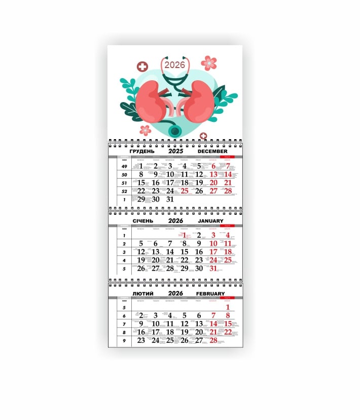 Календарь квартальный настенный Vivay 2026 Медицинский 30x65 см Разноцветный (hub_t0rfkl)