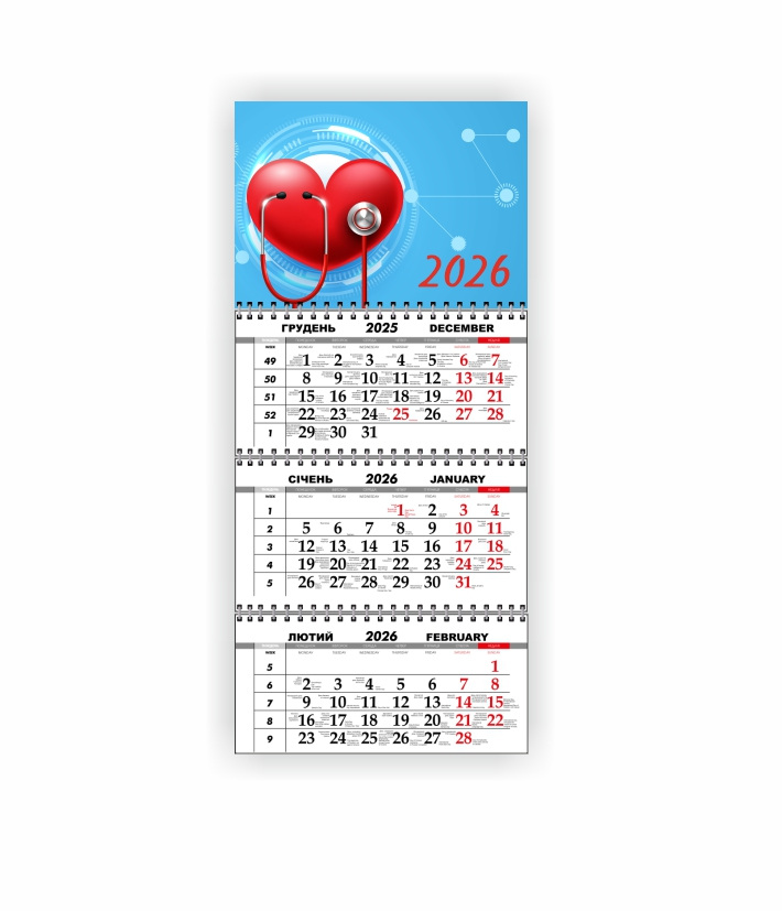 Календарь квартальный настенный Vivay 2026 Медицинский 30x65 см Разноцветный (hub_t0rfkl)