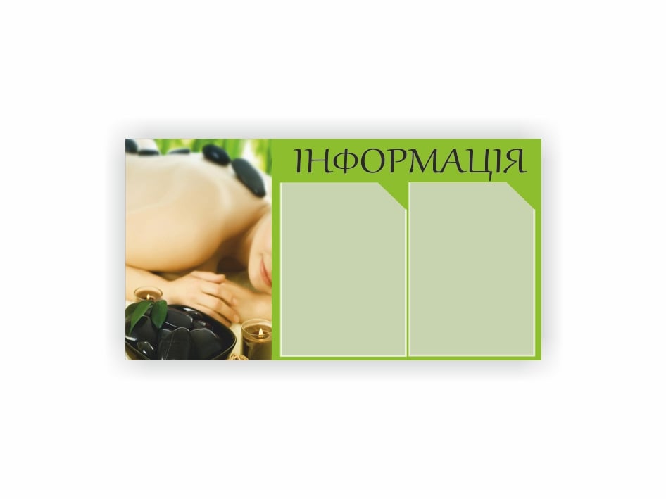 Описание: Информационный стенд Язык: украинский Характеристики изделия: основа – ПВХ 3 мм с самоклеящейся оклейкой пленкой разрешение печати 1440 dpi