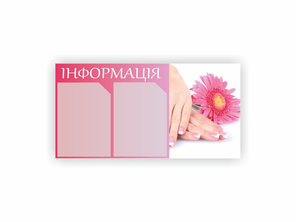 Описание: Информационный стенд Язык: украинский Характеристики изделия: основа – ПВХ 3 мм с самоклеящейся оклейкой пленкой разрешение печати 1440 dpi