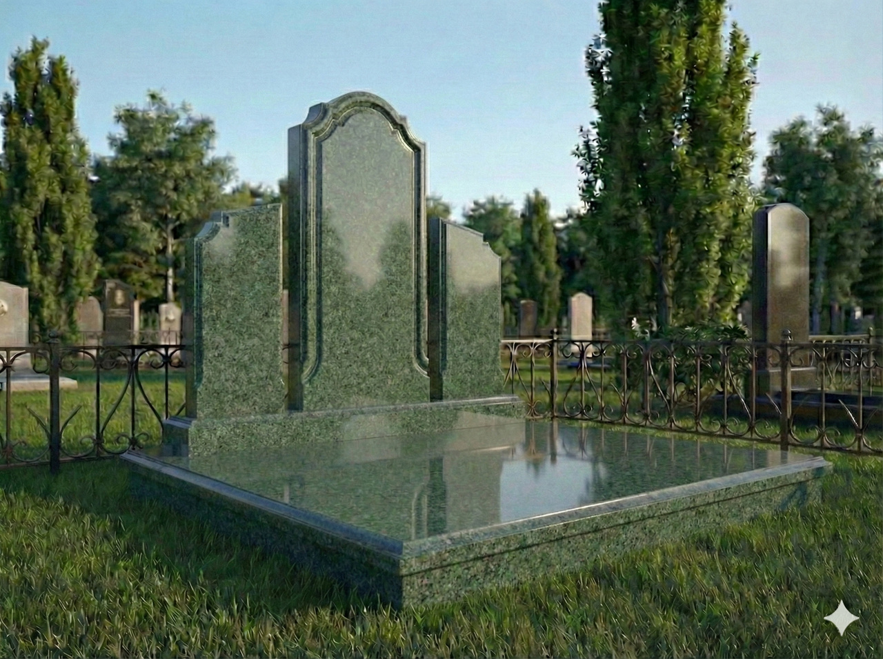 Елітний меморіальний комплекс "три стелі" зелений граніт