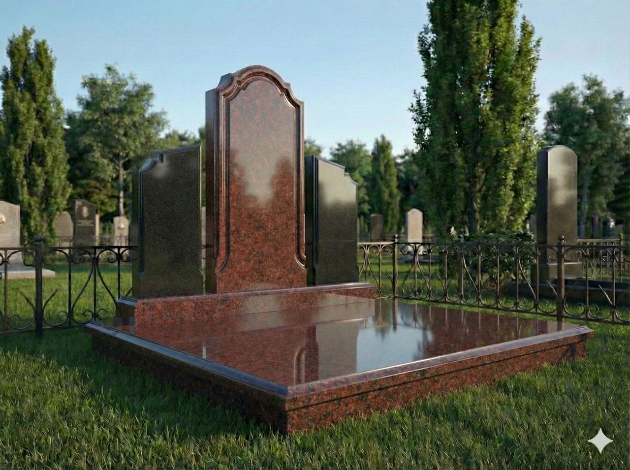 Елітний меморіальний комплекс "три стелі" червоний граніт