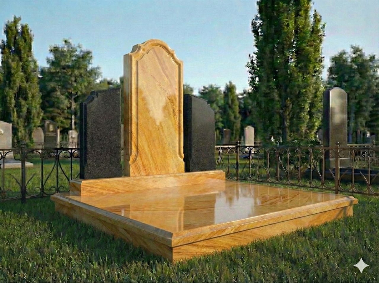 Елітний меморіальний комплекс "три стелі" жовтий камінь