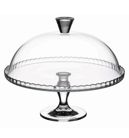 Блюдо на ноге Patisserie Pasabahce 95200 со стеклянной куполообразной крышкой.