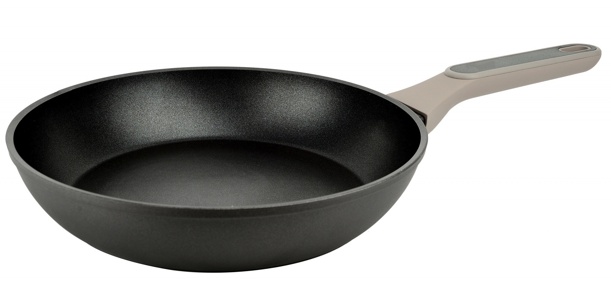 Благодаря тщательно продуманной конструкции корпуса, изготовленного из кованого алюминия с толщиной стенок 3,5 мм, сковорода нагревается быстро и максимально равномерно, что значительно облегчает и ускоряет приготовление пищи, а также препятствует пригоранию и неравномерному прокаливанию продуктов.