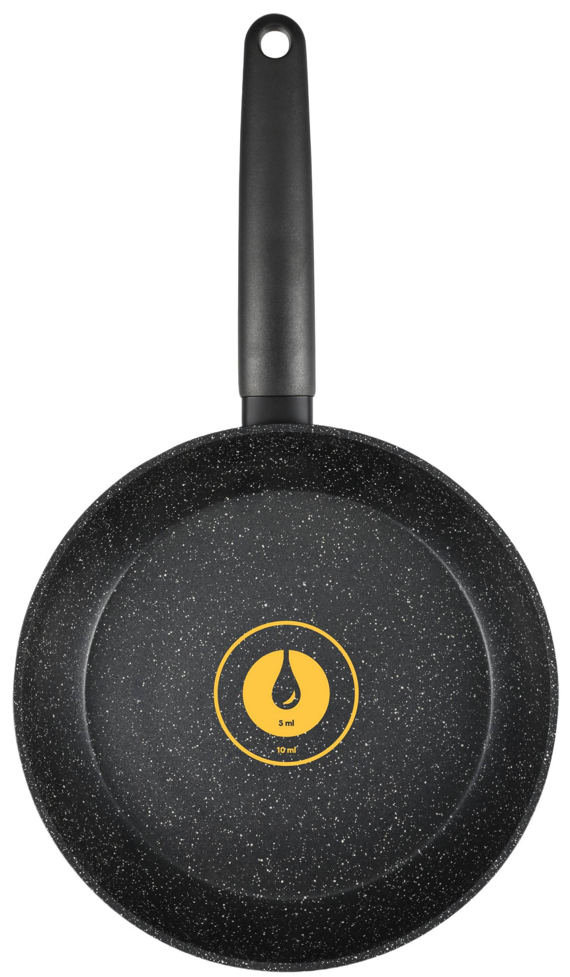 Высококачественный кованый алюминий толщиной 2.5 мм равномерно распределяет тепло по дну и быстро передает его блюду.