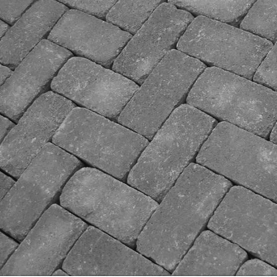 Характеристики товара Тротуарная плитка Золотой Мандарин Кирпич Антик 200х100х60 мм черный на белом цементе