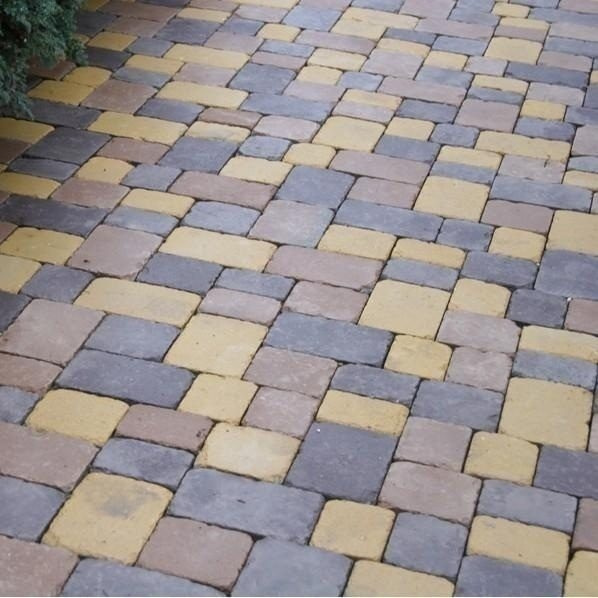 Характеристики товара Тротуарная плитка Золотой Мандарин Плац Антик 160х60 мм коричневый на белом цементе