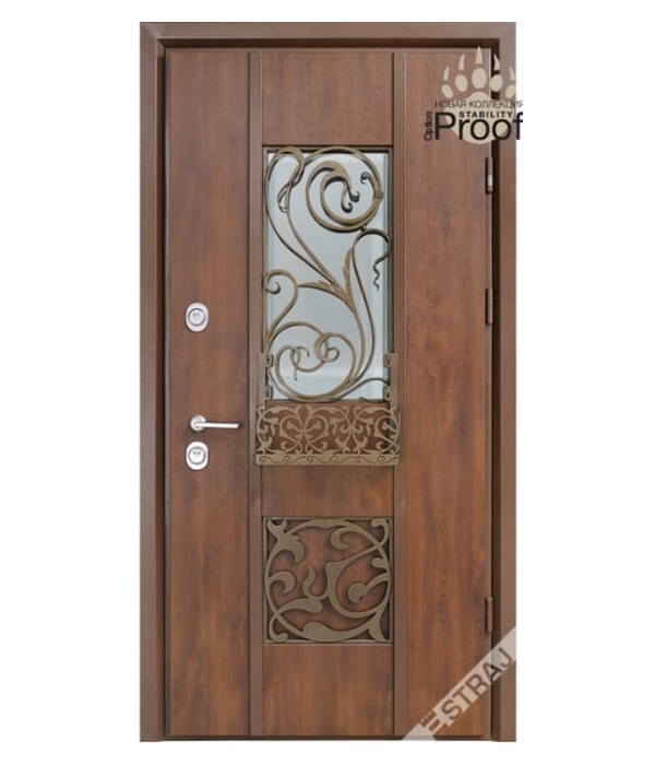 Компания «Страж» - украинское предприятие европейского уровня, которое уже 17 лет занимается изготовлением высококачественных дверей для частных домов и городских квартир. Компания постоянно обновляет модельный ряд, регулярно участвует в специализированных выставках, развивается и повышает качество своих изделий. Компания «Страж» использует только самые современные технологии, качественные материалы, высококлассную фурнитуру, замки от зарекомендовавших себя итальянских и российских производителей, а также авторский декор – кованые элементы и витражное стекло.На сегодняшний день ТМ «Страж» предлагает покупателям широчайший модельный ряд входных дверей – от бюджетных изделий – до серий премиум-класса. Входные двери «Страж» - это оптимальное соотношение цены и качества, индивидуальный подход к каждому клиенту и высочайший уровень сервиса.Компания «Страж» представляет новую коллекцию входных уличных дверей Stability PROOF. Особенностью конструкции является специализированный стальной лист с покрытием ПВХ "Винорит", который изготовлен на основе оцинкованного плоского проката, толщиной 1,2 мм., при толщине покрытия цинка 230 г./кв.м. Ламинированый стальной лист изготавливается компанией Страж методом кашированния на автоматизированной производственной линии европейского производства. Процесс происходит под воздействием давления, температуры и термохимический реакции. В результате покрытие обладает высокими эксплуатационными свойствами.Входные двери Stability PROOF устойчивы к перепадам температур, агрессивным климатическим воздействиям и ультрафиолетовым лучам. В конструкции дверного полотна предусмотрен термомост, что препятствует появлению конденсата, при разнице температур. Надежная входная дверь Stability PROOF станет гарантом безопасности вашего дома.