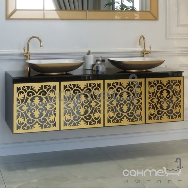 Тумба подвесная для ванной комнаты 1600 без раковин Marsan Vincent белый с накладкой серебро