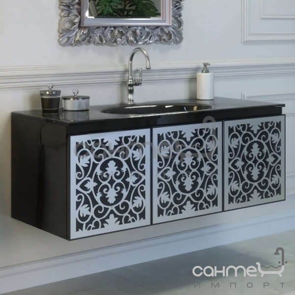 Тумба подвесная для ванной комнаты 1200 без раковины Marsan Vincent белый с накладкой серебро