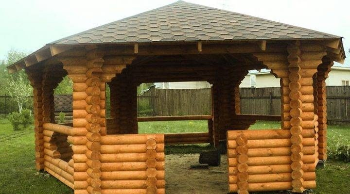 Строительство беседки из оцилиндрованного бревна 5х5 м