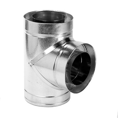 Описание Тройник 87° на дымоход Versia-Lux Ø 230/300 мм нерж/оц 0,5/0,5 мм двустенный элемент