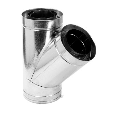Характеристики товара Тройник 45° на дымоход Versia-Lux Ø 130/200 мм нерж/оц 0,5/0,5 мм двустенный элемент