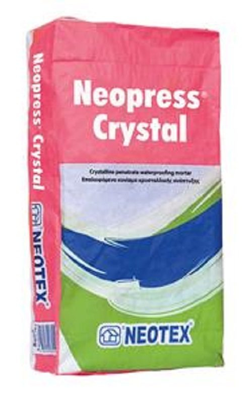 Неопресс ® Кристалл цементирующий кристаллический материал, пригодный для изоляции и гидроизоляции бетона. идеально подходит для водяных резервуаров, скважин, силосов, подземных помещений и подвалов, тоннелей, стен, а также поверхностей, подлежащих покрытию плитки.