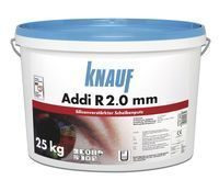 Фасовка: 25 кг. Расход: 2.6 кг/м2. Штукатурка Knauf Addi R 2.0 мм 25 кг отвечает всем европейским нормам и требованиям.