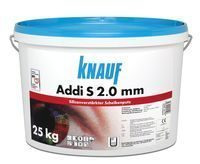 Фасовка: 25 кг. Расход: 2.2 кг/м2. Штукатурка Knauf Addi S 1,5 мм 25 кг предназначена для высококачественной тонкослойной декоративной обработки поверхности внутри и снаружи зданий по бетонным, цементным, цементно-известковым, гипсовым, древесностружечным основаниям, гипсокартонным плитам, а также в системах утепления домов.