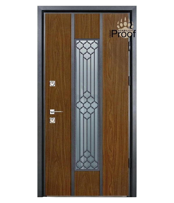 Компания «Страж» - украинское предприятие европейского уровня, которое уже 19 лет занимается изготовлением высококачественных дверей для частных домов и городских квартир. Компания постоянно обновляет модельный ряд, регулярно участвует в специализированных выставках, развивается и повышает качество своих изделий. Компания «Страж» использует только самые современные технологии, качественные материалы, высококлассную фурнитуру, замки от зарекомендовавших себя итальянских и российских производителей, а также авторский декор – кованые элементы и витражное стекло.На сегодняшний день ТМ «Страж» предлагает покупателям широчайший модельный ряд входных дверей – от бюджетных изделий – до серий премиум-класса. Входные двери «Страж» - это оптимальное соотношение цены и качества, индивидуальный подход к каждому клиенту и высочайший уровень сервиса.Компания «Страж» представляет новую коллекцию входных уличных дверей Stability PROOF. Особенностью конструкции является специализированный стальной лист с покрытием ПВХ "Винорит", который изготовлен на основе оцинкованного плоского проката, толщиной 1,2 мм., при толщине покрытия цинка 230 г./кв.м. Ламинированый стальной лист изготавливается компанией Страж методом кашированния на автоматизированной производственной линии европейского производства. Процесс происходит под воздействием давления, температуры и термохимический реакции. В результате покрытие обладает высокими эксплуатационными свойствами.Входные двери Stability PROOF устойчивы к перепадам температур, агрессивным климатическим воздействиям и ультрафиолетовым лучам. В конструкции дверного полотна предусмотрен термомост, что препятствует появлению конденсата, при разнице температур. Надежная входная дверь Stability PROOF станет гарантом безопасности вашего дома.