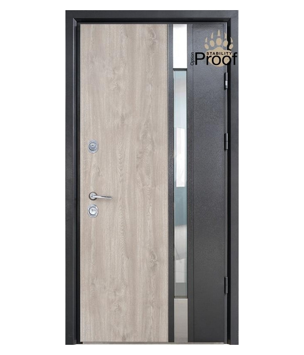 Компания «Страж» - украинское предприятие европейского уровня, которое уже 19 лет занимается изготовлением высококачественных дверей для частных домов и городских квартир. Компания постоянно обновляет модельный ряд, регулярно участвует в специализированных выставках, развивается и повышает качество своих изделий. Компания «Страж» использует только самые современные технологии, качественные материалы, высококлассную фурнитуру, замки от зарекомендовавших себя итальянских и российских производителей, а также авторский декор – кованые элементы и витражное стекло.На сегодняшний день ТМ «Страж» предлагает покупателям широчайший модельный ряд входных дверей – от бюджетных изделий – до серий премиум-класса. Входные двери «Страж» - это оптимальное соотношение цены и качества, индивидуальный подход к каждому клиенту и высочайший уровень сервиса.Компания «Страж» представляет новую коллекцию входных уличных дверей Stability PROOF. Особенностью конструкции является специализированный стальной лист с покрытием ПВХ "Винорит", который изготовлен на основе оцинкованного плоского проката, толщиной 1,2 мм., при толщине покрытия цинка 230 г./кв.м. Ламинированый стальной лист изготавливается компанией Страж методом кашированния на автоматизированной производственной линии европейского производства. Процесс происходит под воздействием давления, температуры и термохимический реакции. В результате покрытие обладает высокими эксплуатационными свойствами.Входные двери Stability PROOF устойчивы к перепадам температур, агрессивным климатическим воздействиям и ультрафиолетовым лучам. В конструкции дверного полотна предусмотрен термомост, что препятствует появлению конденсата, при разнице температур. Надежная входная дверь Stability PROOF станет гарантом безопасности вашего дома.