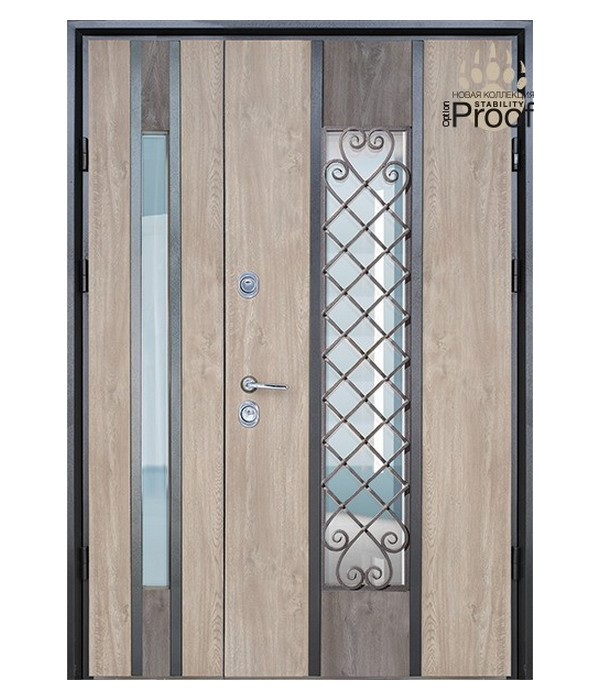 Компания «Страж» - украинское предприятие европейского уровня, которое уже 19 лет занимается изготовлением высококачественных дверей для частных домов и городских квартир. Компания постоянно обновляет модельный ряд, регулярно участвует в специализированных выставках, развивается и повышает качество своих изделий. Компания «Страж» использует только самые современные технологии, качественные материалы, высококлассную фурнитуру, замки от зарекомендовавших себя итальянских и российских производителей, а также авторский декор – кованые элементы и витражное стекло.На сегодняшний день ТМ «Страж» предлагает покупателям широчайший модельный ряд входных дверей – от бюджетных изделий – до серий премиум-класса. Входные двери «Страж» - это оптимальное соотношение цены и качества, индивидуальный подход к каждому клиенту и высочайший уровень сервиса.Компания «Страж» представляет новую коллекцию входных уличных дверей Stability PROOF. Особенностью конструкции является специализированный стальной лист с покрытием ПВХ "Винорит", который изготовлен на основе оцинкованного плоского проката, толщиной 1,2 мм., при толщине покрытия цинка 230 г./кв.м. Ламинированый стальной лист изготавливается компанией Страж методом кашированния на автоматизированной производственной линии европейского производства. Процесс происходит под воздействием давления, температуры и термохимический реакции. В результате покрытие обладает высокими эксплуатационными свойствами.Входные двери Stability PROOF устойчивы к перепадам температур, агрессивным климатическим воздействиям и ультрафиолетовым лучам. В конструкции дверного полотна предусмотрен термомост, что препятствует появлению конденсата, при разнице температур. Надежная входная дверь Stability PROOF станет гарантом безопасности вашего дома.