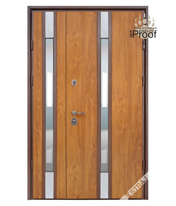 Компания «Страж» - украинское предприятие европейского уровня, которое уже 19 лет занимается изготовлением высококачественных дверей для частных домов и городских квартир. Компания постоянно обновляет модельный ряд, регулярно участвует в специализированных выставках, развивается и повышает качество своих изделий. Компания «Страж» использует только самые современные технологии, качественные материалы, высококлассную фурнитуру, замки от зарекомендовавших себя итальянских и российских производителей, а также авторский декор – кованые элементы и витражное стекло.На сегодняшний день ТМ «Страж» предлагает покупателям широчайший модельный ряд входных дверей – от бюджетных изделий – до серий премиум-класса. Входные двери «Страж» - это оптимальное соотношение цены и качества, индивидуальный подход к каждому клиенту и высочайший уровень сервиса.Компания «Страж» представляет новую коллекцию входных уличных дверей Stability PROOF. Особенностью конструкции является специализированный стальной лист с покрытием ПВХ "Винорит", который изготовлен на основе оцинкованного плоского проката, толщиной 1,2 мм., при толщине покрытия цинка 230 г./кв.м. Ламинированый стальной лист изготавливается компанией Страж методом кашированния на автоматизированной производственной линии европейского производства. Процесс происходит под воздействием давления, температуры и термохимический реакции. В результате покрытие обладает высокими эксплуатационными свойствами.Входные двери Stability PROOF устойчивы к перепадам температур, агрессивным климатическим воздействиям и ультрафиолетовым лучам. В конструкции дверного полотна предусмотрен термомост, что препятствует появлению конденсата, при разнице температур. Надежная входная дверь Stability PROOF станет гарантом безопасности вашего дома.