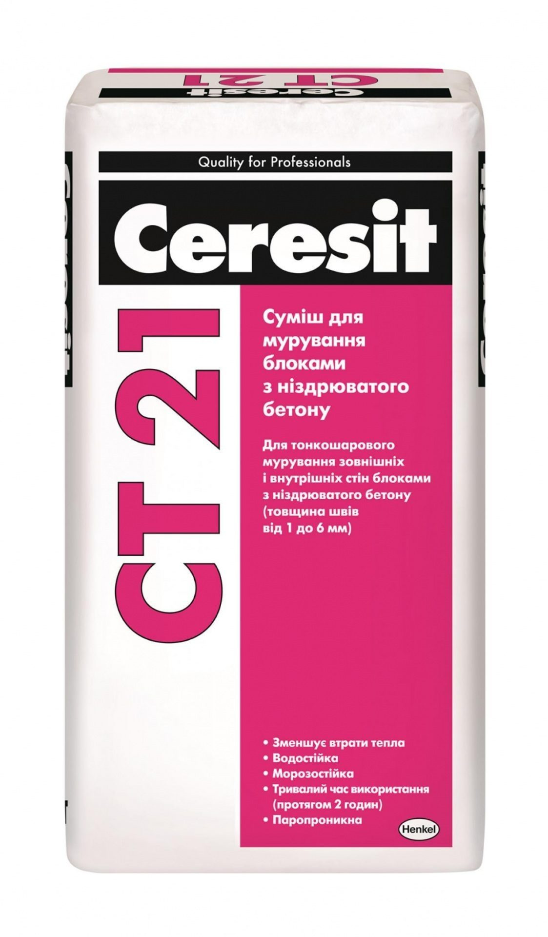 Характеристики товара Кладочная смесь Ceresit CT 21 25 кг