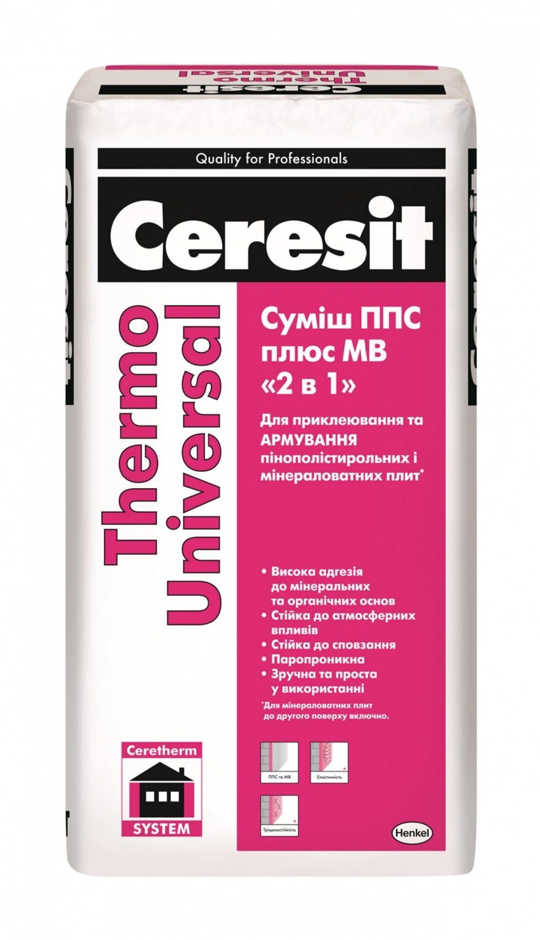Характеристики товара Клеевая смесь Ceresit Thermo Universal 25 кг